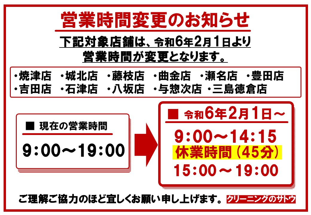 営業時間変更のお知らせ