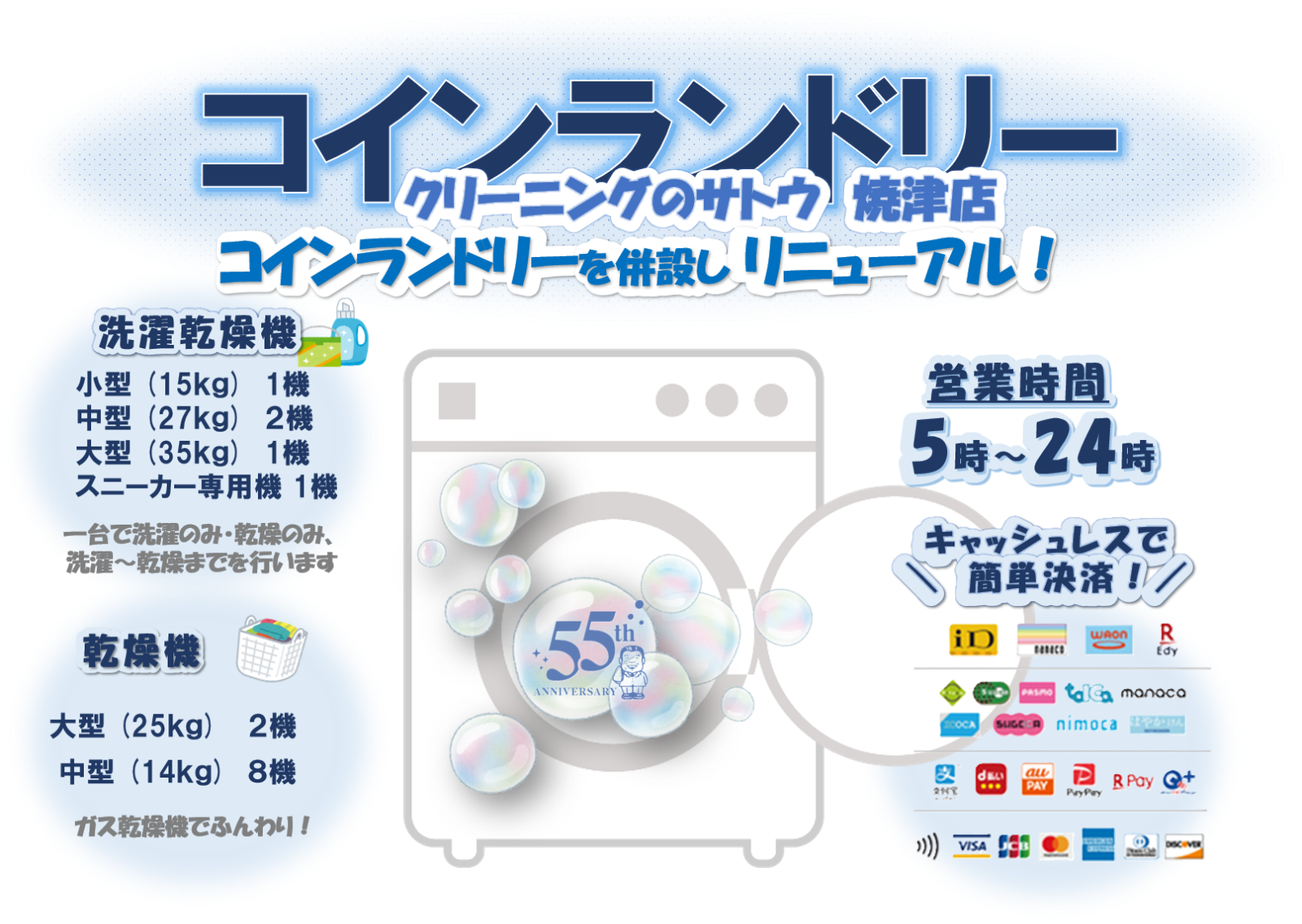 クリーニングのサトウ 焼津店 コインランドリーリニューアルOPENのお知らせ