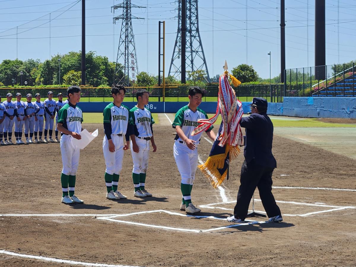 静岡県野球連盟:高森副会長による優勝旗授与