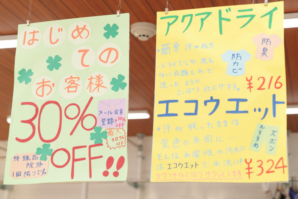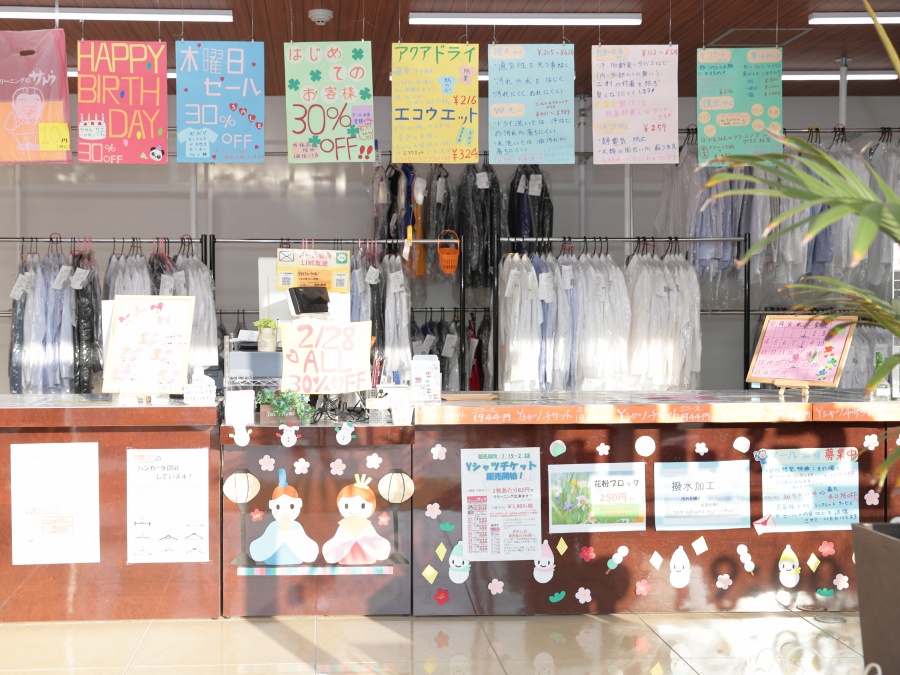 クイックサービス(当日仕上げ)受付OK! (日曜日は除外) 11:00まで→17:00お渡し出来ます。 (ビジネス衣類・学生服・礼服に限ります。 クイックサービス対象外の商品、サービスがございますので、 詳しくは店舗にてご確認下さい。) |